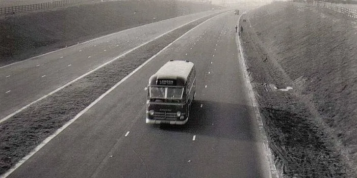 - Photograph of Midland Red coach on the M1 by David Jones, from this photo gallery.