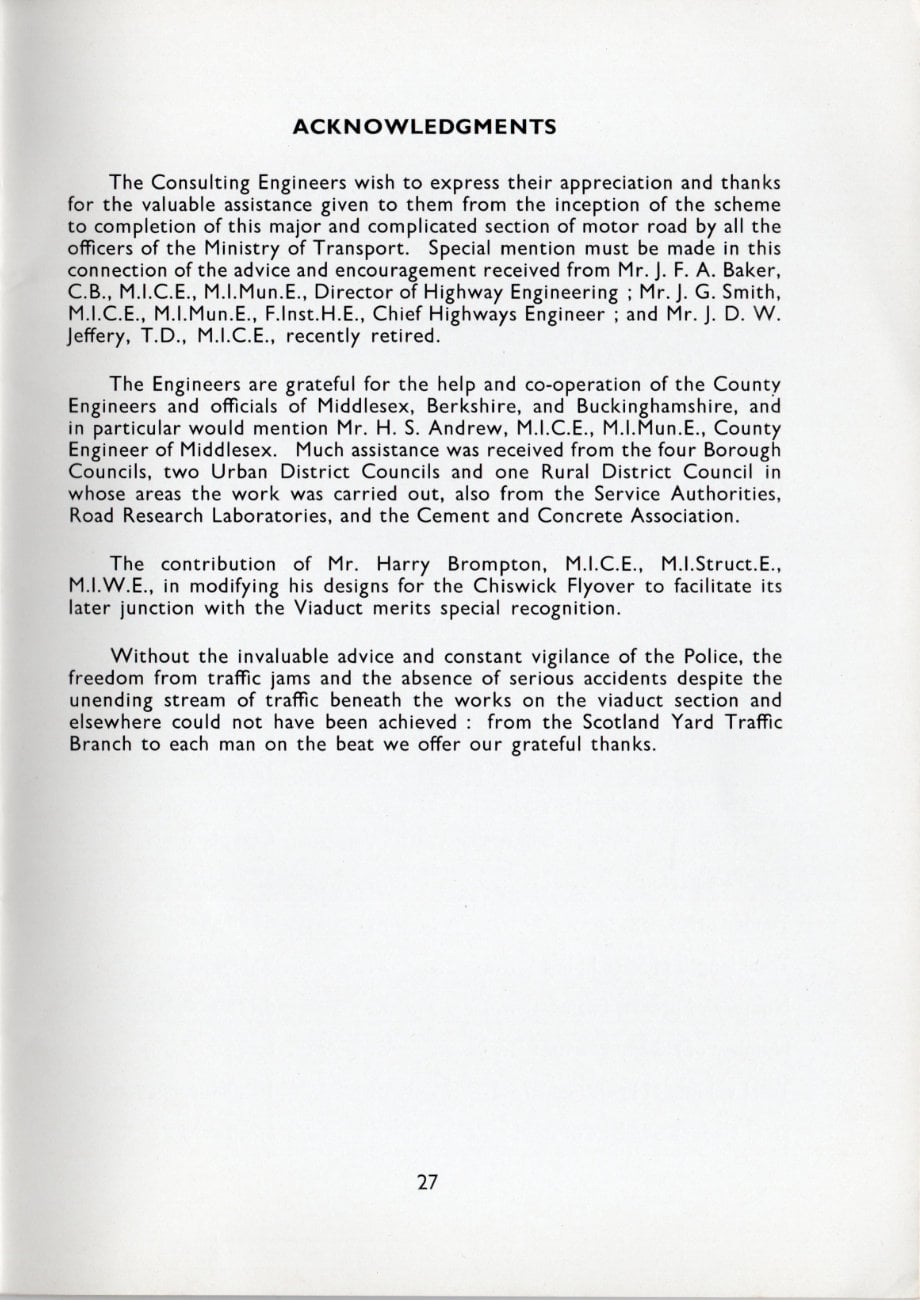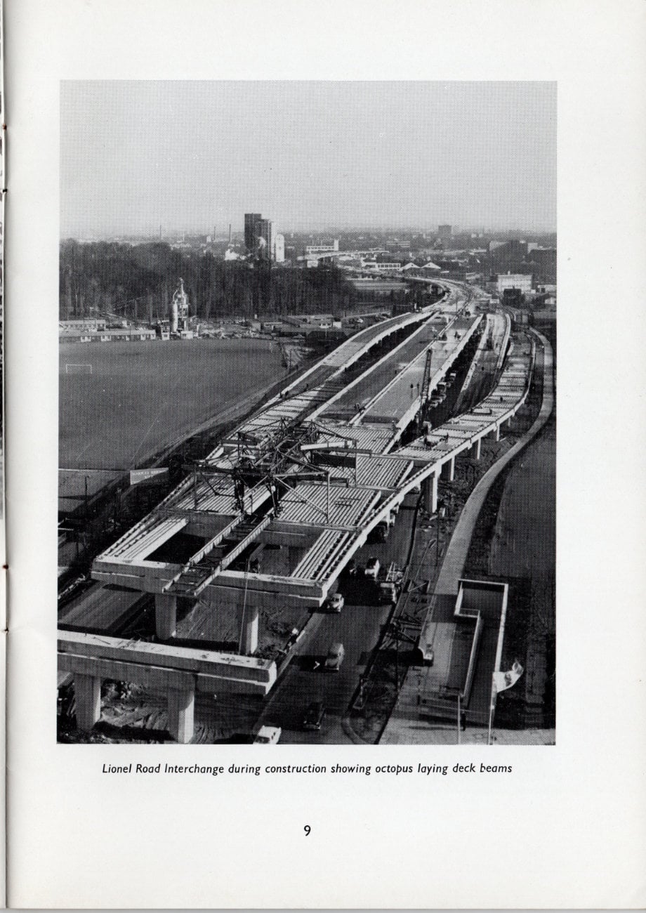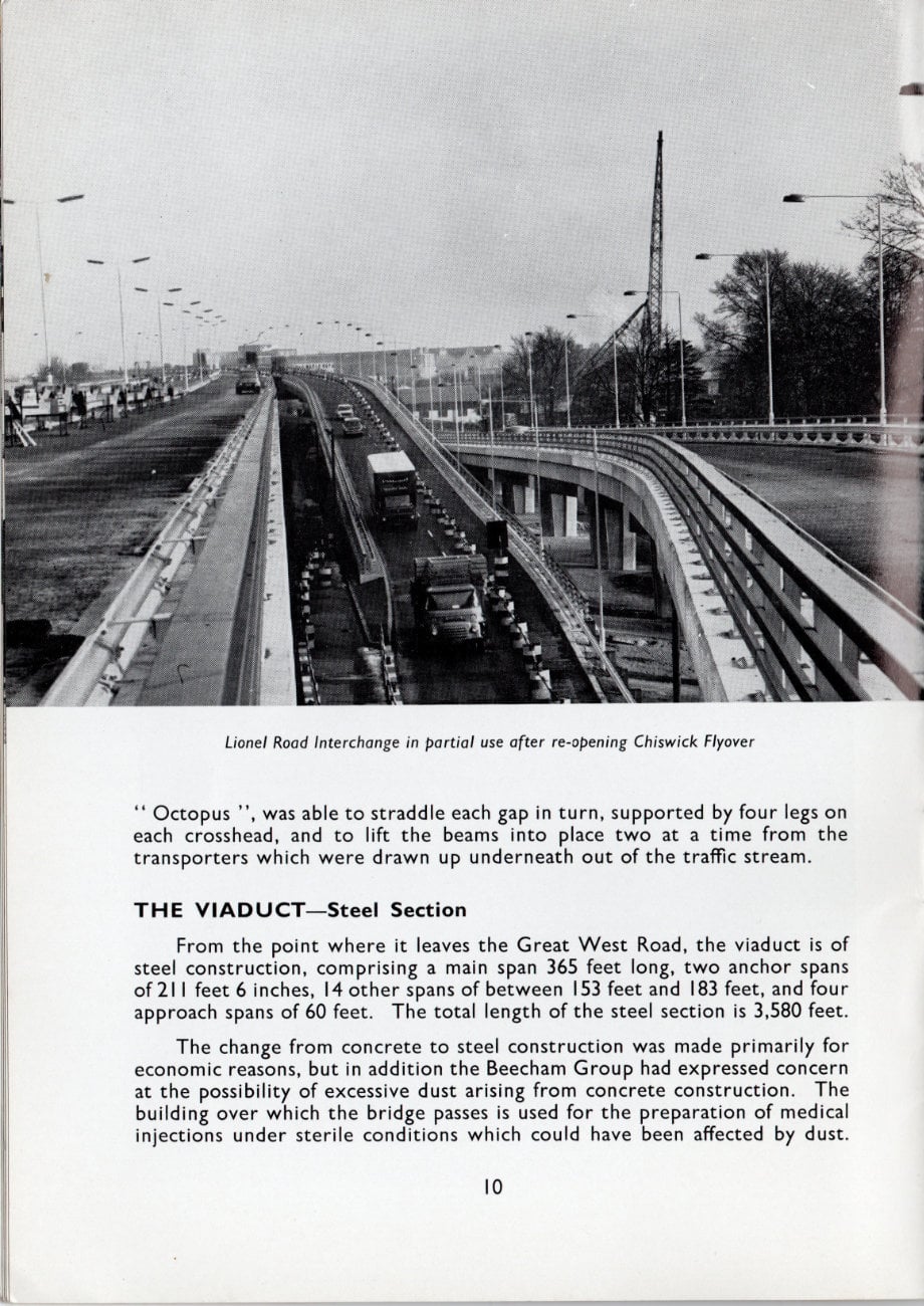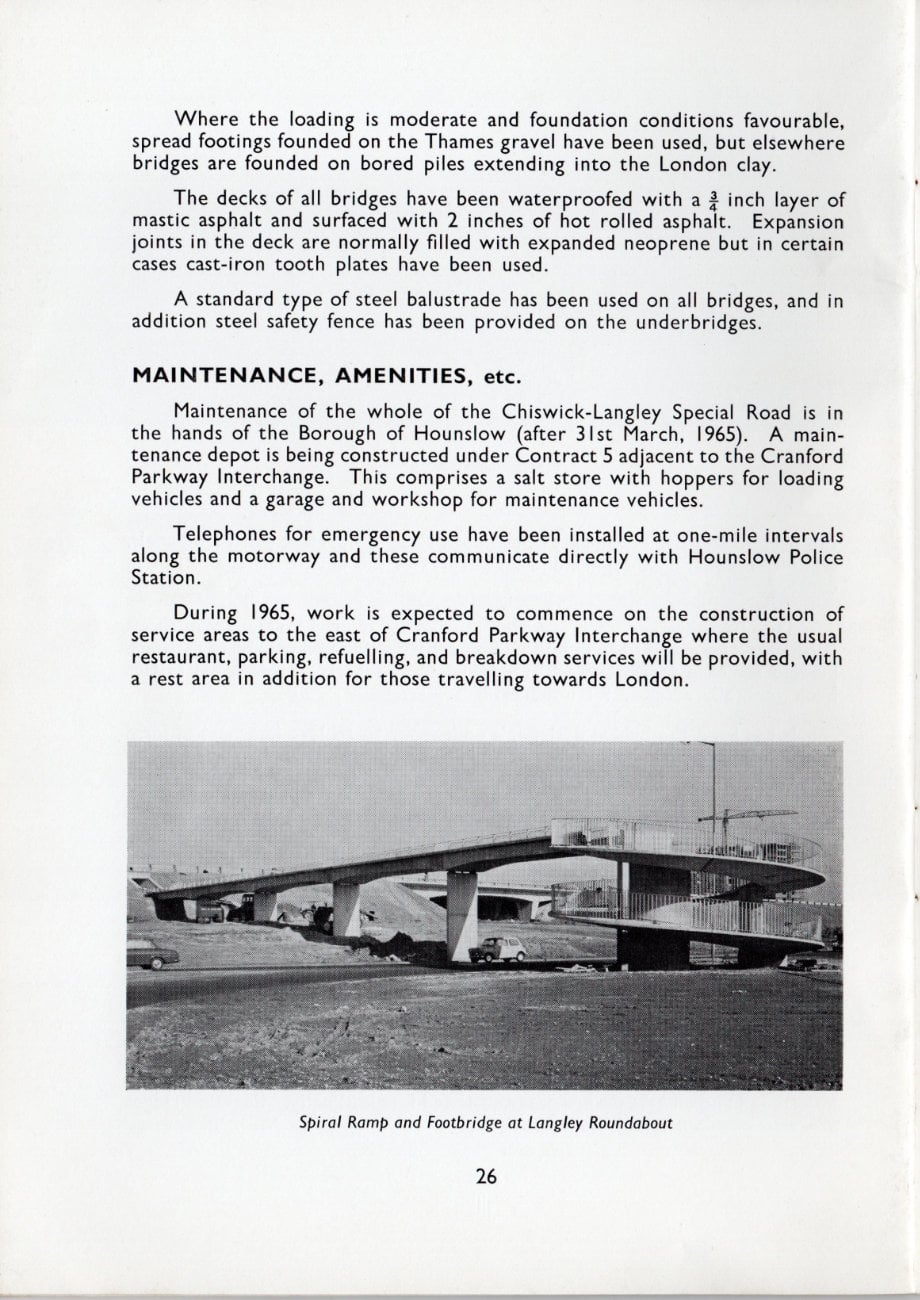 The excitement and pride surrounding this new and pioneering length of motorway is inescapable in this booklet published to mark its opening in 1964. It included the lengthy Brentford Viaduct, carrying the motorway above the Great West Road through the suburbs, a wholly new kind of road that had never been seen before in the UK.
